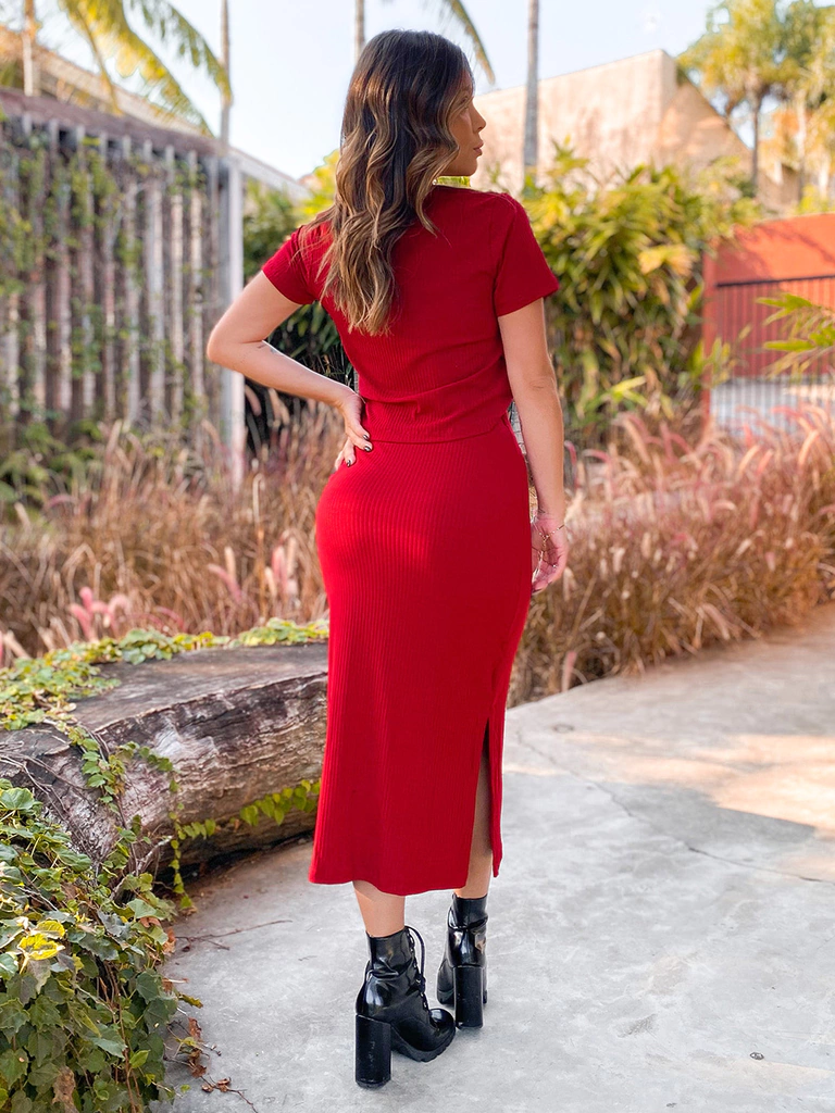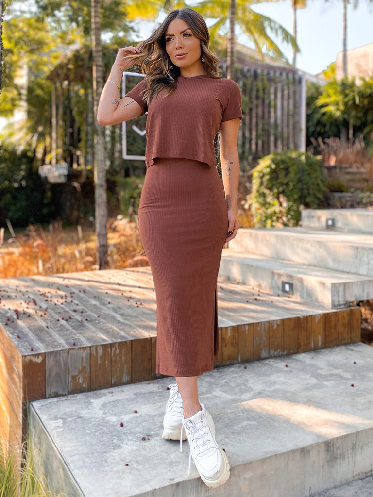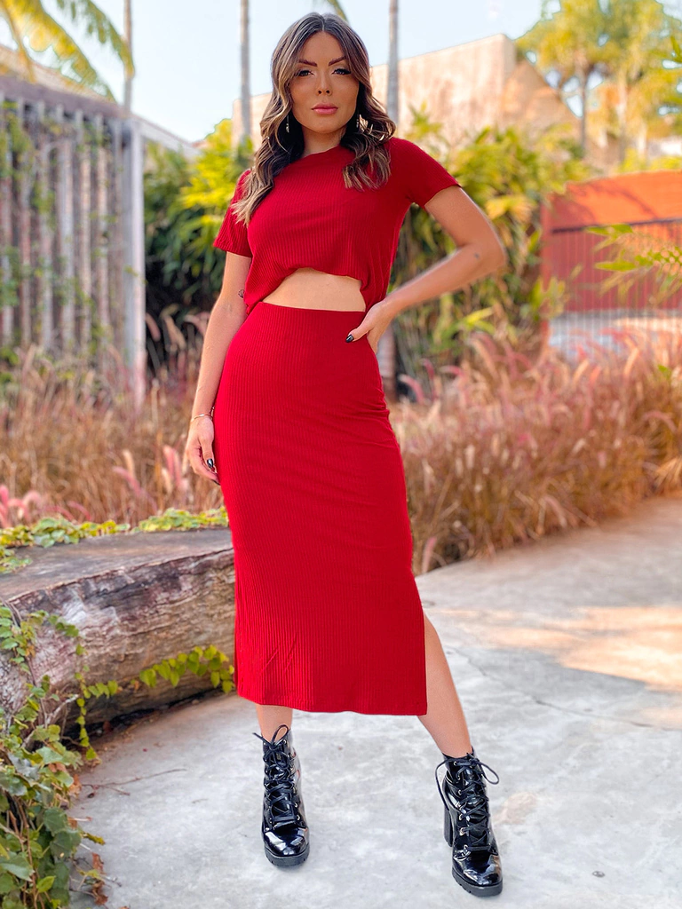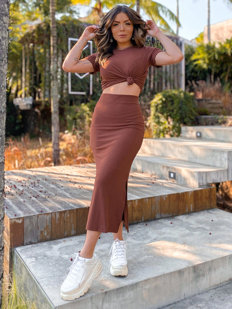 Conjunto saia e blusa é uma peça estilosa e versátil com caimento perfeito, que combina com qualquer ocasião.